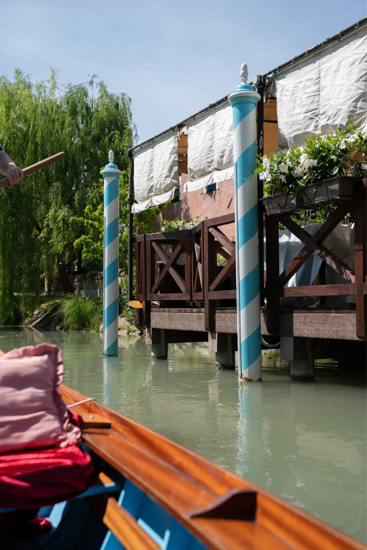 Un approdo privato accoglie chi giunge dal fiume, trasformando l’arrivo stesso in un preludio di emozioni.